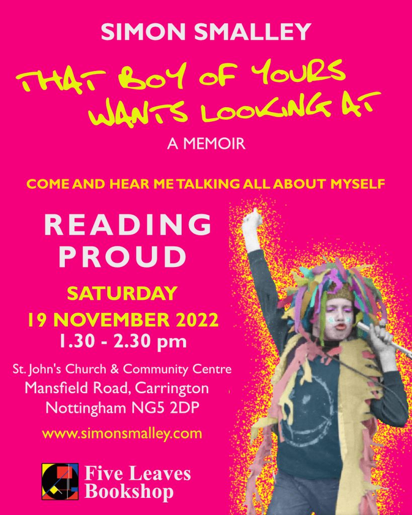I gladly donated ten signed copies of ‘That Boy Of Yours Wants Looking At’ to the Under The Rainbow exhibition, with all money from sales to go to Notts LGBT+ Network. Those copies sold out, and I happily supplied a second set.